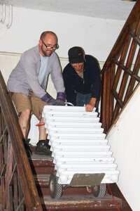 Am 01.10.2016 nahmen 17 Helfer teil. Die Demontage der Heizungsanlage wurde weitergeführt und die bereitgestellten Container beladen. Es wurden Trockenbauwände abgebrochen und Fußbodenestrich abgeschlagen. Auch für ein Frühstück wurde gesorgt.