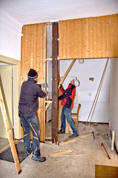 Bei diesem Arbeitseinsatz wurde das Erdgeschoss beräumt, alle Fußbodenbeläge entfernt und Einbauten und Türrahmen abgebrochen. Wir danken allen, die trotz Kälte mitgearbeitet und Frühstück zubereitet haben.