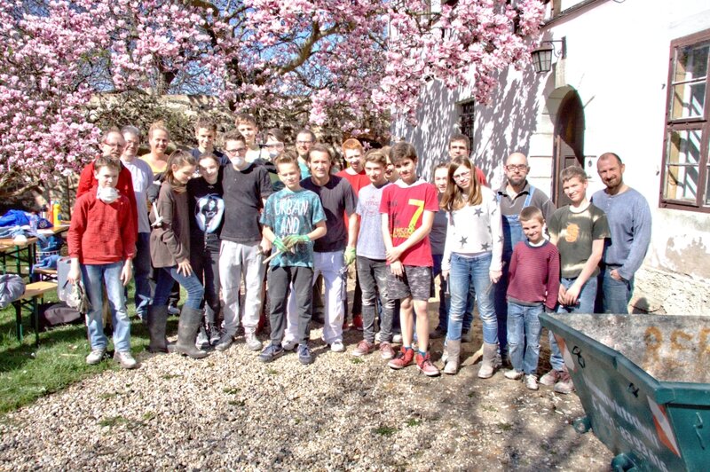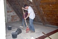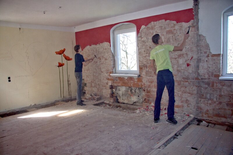 Am 01.04.2017 nahmen viele Konfirmanden teil. Mädchen wie Jungen scheuten sich nicht vor anstrengenden Arbeiten. Im Obergeschoß musste der Putz von den Innenseiten der Außenwände abgeschlagen werden. Vom Dachboden war Bauschutt abzutransportieren.