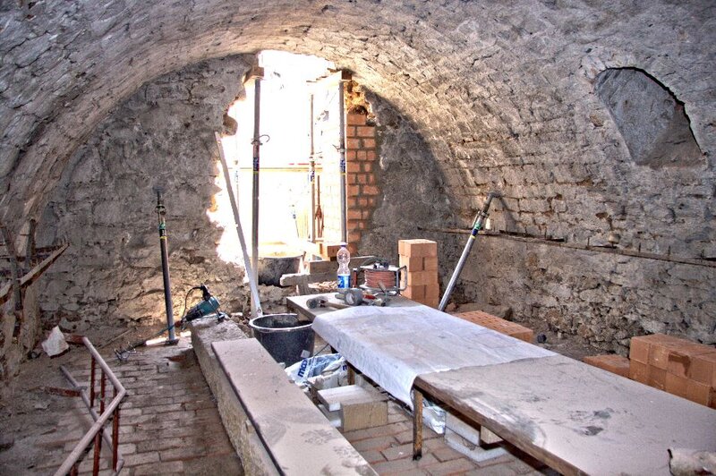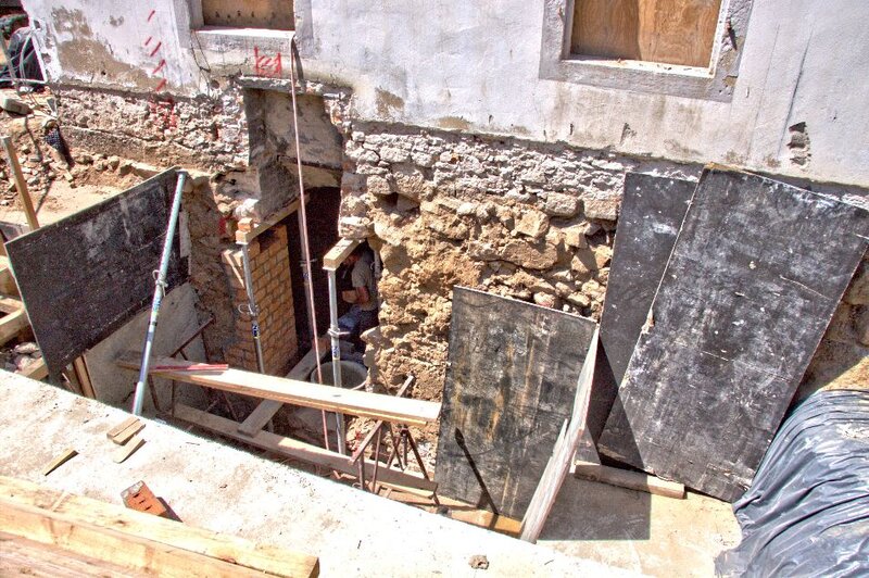 In den großen Kellerraum scheint nun das Tageslicht hinein, denn der neue Zugang ist gegenwärtig sehr intensiv in Bau.