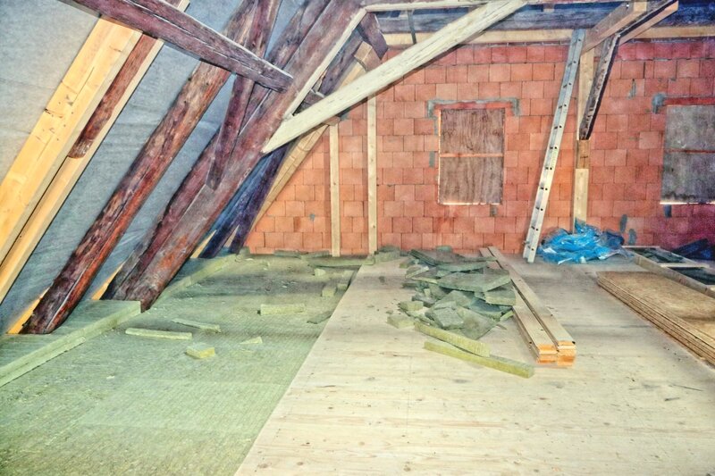 Im Dachboden haben der Boden und die Dachinnenseiten eine Isolierung erhalten.
