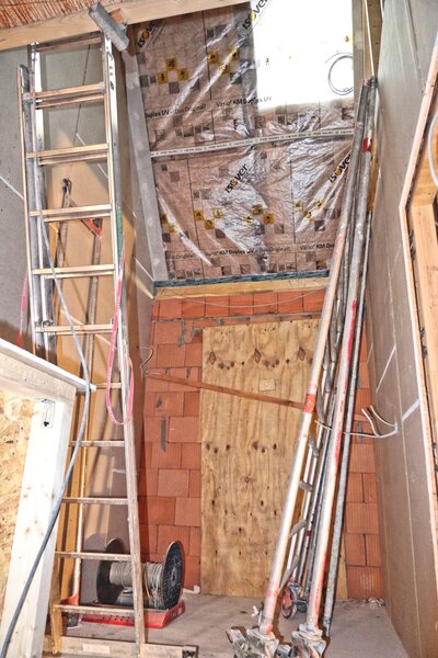 Die Dachklempner haben auch ihre Arbeiten abgeschlossen und demnächst werden im gesamten Haus die Fenster eingebaut.