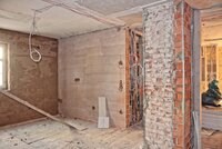 Auch im Obergeschoß sind diese Arbeiten in vollem Gange. Vom Obergeschoß zum Dachboden wurde an anderer Stelle als früher ein neuer Treppenschacht eingebaut.