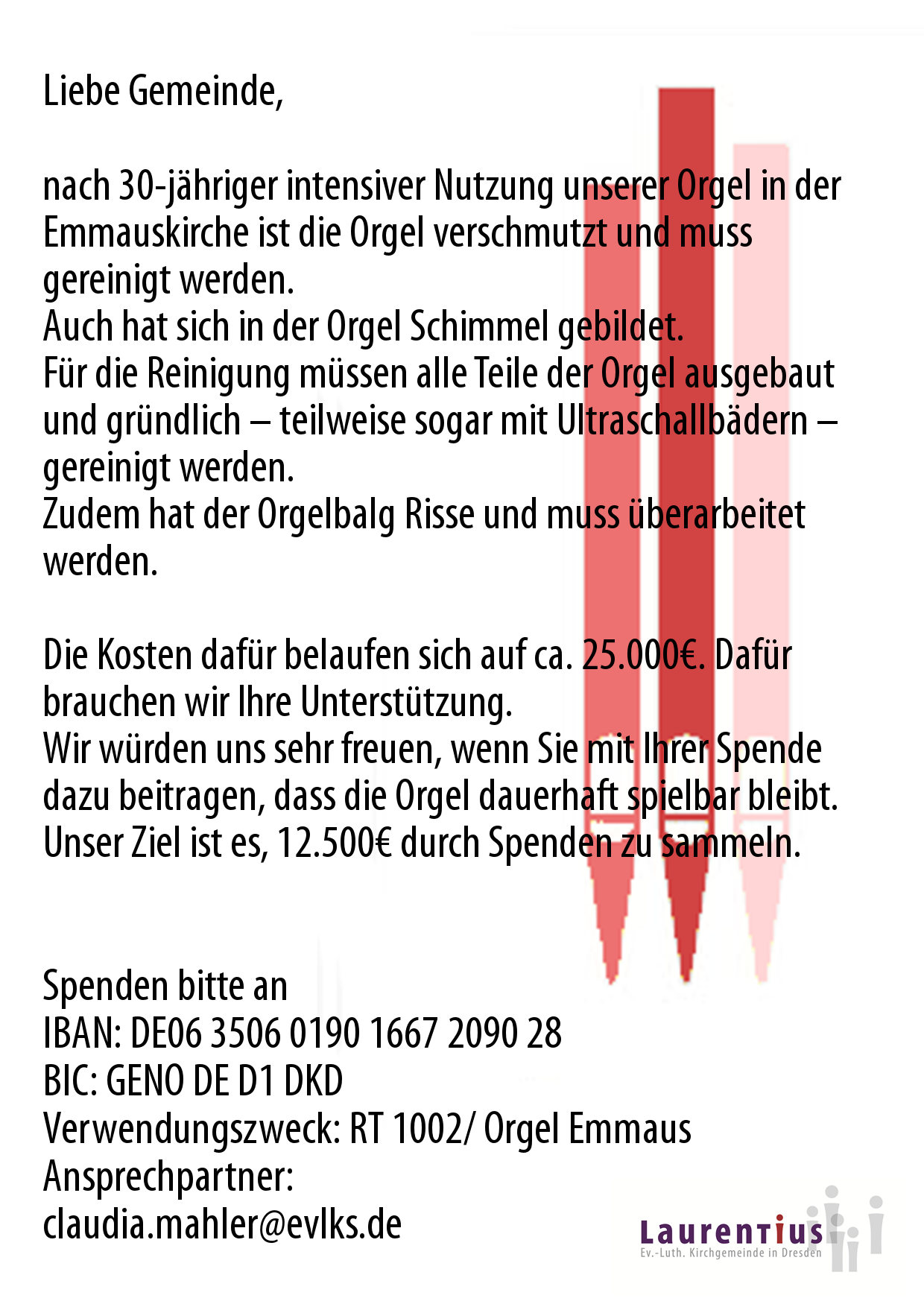 Verwendungszweck: RT 1002/ Orgel Emmaus