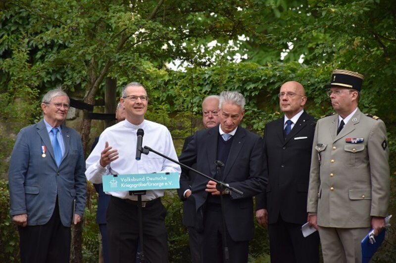 Es ist dem Engagement eines Mäzens – Herrn Romain d‘Eprésmesnil – zu danken, dass nicht nur das Denkmal saniert, sondern zudem die Namen der Verstorbenen auf Tafeln verewigt werden konnten. In Anwesenheit von Herrn Romain d‘Eprésmesnil und von Vertretern der französischen und deutschen Kriegsgräberfürsorge sowie der französischen Botschaft in Berlin und der Bundeswehr wurde der Verstorbenen gedacht und im Gebet unsere Sehnsucht nach Frieden und Versöhnung unter den Völkern zum Ausdruck gebracht.