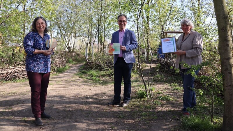 Der Gemeinschaftsgarten „weltchen“ in Mickten ist als Projekt der „UN-Dekade biologischen Vielfalt“ im Sonderwettbewerb „Soziale Natur – Natur für alle“ ausgezeichnet worden. Die Übergabe der Auszeichnung fand - coronabedingt - im kleinen Rahmen durch Umweltbürgermeisterin Eva Jähnigen statt.