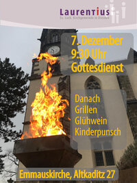 Der Förderverein der Emmauskirche Dresden-Kaditz e.V. freut sich im Anschluss an den Advents-Gottesdienst am 7. Dezember auf Sie. Mit Bratwurst, Glühwein und Kinderpunsch stimmen wir gemeinsam auf den 2. Advent ein.