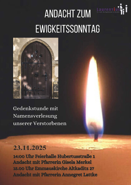 Wir laden herzlich zu den Andachten zum Ewigkeitssonntag am 23.11.2025 in unserer Gemeinde:
