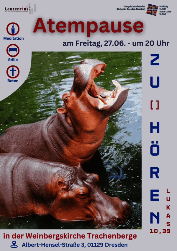 Das Team der Atempause lädt herzlich für Freitag, 27.06.25 um 20 Uhr in die Weinbergskirche ein.