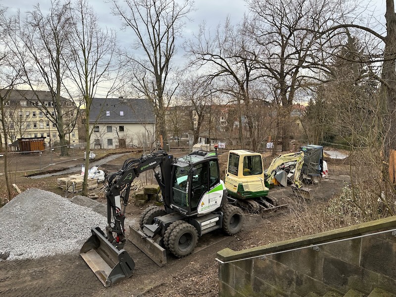Anfang Dezember fiel der lang ersehnte Startschuss für die Neugestaltung des Außengeländes der Weinbergskirche. Dank der Förderung des Sächsischen Umweltministeriums (Förderrichtlinie Stadtgrün, Lärm, Radon/2023 - Teil B) und des Stadtbezirksbeirates Dresden-Pieschen wird in den kommenden Wochen der komplette zurückliegende Teil rund um die ehemalige Baracke neugestaltet. Direkt im Anschluss sollen die Arbeiten im 2. Bauabschnitt dank einer PMO-Einzelfallförderung des Sächsisches Staatsministerium für Wissenschaft, Kultur und Tourismus, d.h. im Bereich zwischen Glockenturm und Kirche fortgesetzt werden. Wenn alles wie gewünscht läuft, wird das Außengelände im Herbst nicht mehr wiederzuerkennen sein: Wege und neue Grünflächen mit standortgerechten Pflanzen laden zum Verweilen ein und werden einen neuen Anziehungspunkt für die Anwohner und Gemeindeglieder schaffen.