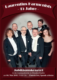 Anlässlich unseres 15-jährigen Jubiläums möchten wir Sie am 4. Mai um 19.00 Uhr in die Emmauskirche in Dresden-Kaditz einladen. Der Eintritt ist frei, eine Spende wird erbeten.