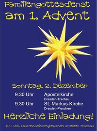 Wir laden ein zu den Familiengottesdiensten am 1. Advent 9.30 Uhr in der Apostelkirche und der St.-Markus-Kirche
