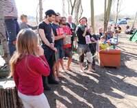Schleifen, Bohren, Sägen, den Vorschlaghammer benutzen – alle Kinder konnten sich ausprobieren. Die Totholzhecke fand einen neuen Platz. Das Gewächshaus hat wieder ein „ansprechendes Gesicht“ bekommen. Außerdem entstanden kleine Schnitzereien, Mini-Insektenhotels und zwei Spiele aus Holz, die auch währen des Saisoneröffnungsfestes regen Anklang fanden.