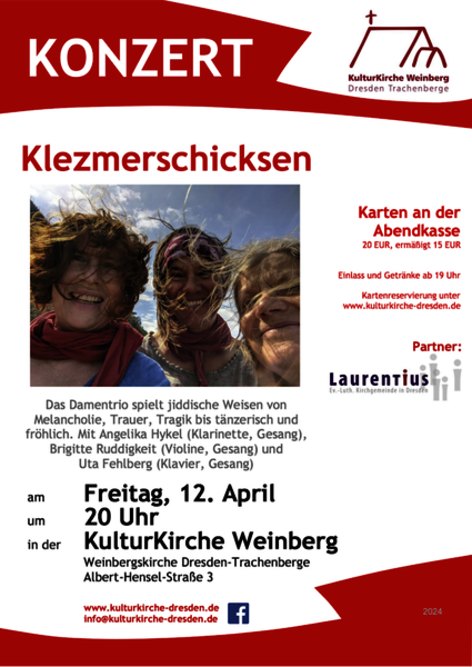 Am Sonnabend, dem 13. April 2024, findet ergänzend ein Tanzworkshop mit den Musikerinnen in der Tanzschule Linhart statt. Informationen unten.