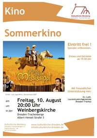 Am Freitag, dem 10. August, wird im Rahmen eines Sommerkinoabends um 20 Uhr in der KulturKirche Weinberg (Weinbergskirche) der Film "Hände weg von Mississippi" gezeigt.