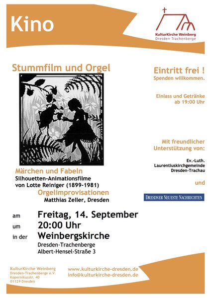Einige Jahre später entstanden zahlreiche Märchen- und Fabelfilme. Mehrere dieser einmaligen Raritäten werden auf einer Großbildleinwand gezeigt und mit Live-Orgelmusik von Matthias Zeller in Szene gesetzt.