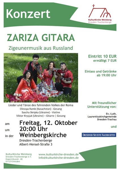 Am Freitag, dem 12. Oktober, spielt um 20 Uhr ZARIZA GITARA Zigeunermusik aus Russland, dem Land, über das seit Jahrhunderten das fahrende Volk zieht.