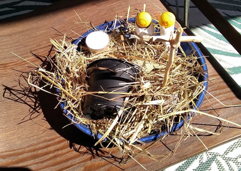Jesus zieht in Jerusalem ein. Nachgebaut von Felicia (5) und Leonas (3).