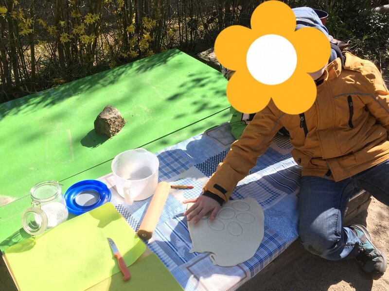 Emil (7 Jahre) beim Ausstechen und ...