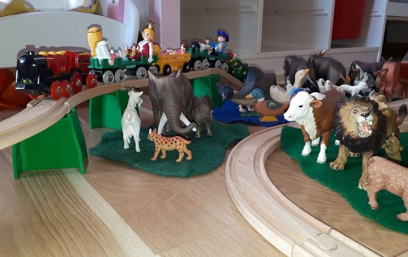 Eisenbahnlandschaft von Juliane (8) und Margarete (6) - mit gaaanz wenig Strom ;)