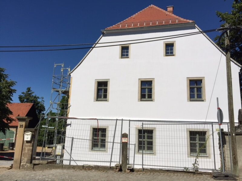 Die Arbeiten zur vollständigen Modernisierung des Pfarrhauses Altkaditz begannen im Frühjahr 2017. Sie waren seit vielen Jahren herbeigesehnt worden. Bereits seit langem hatte es sich abgezeichnet, dass das Pfarrhaus einer Komplettsanierung unterzogen werden muss. Die Grundmauern des Pfarrhauses und ein steinernes Erdgeschoss können bis ins Jahr 1682 zurückverfolgt werden. 1802 war es bei einem Brand zerstört und danach wieder neu gebaut worden. In den Folgejahren waren nur die notwendigsten Erhaltungsmaßnahmen durchgeführt worden, so dass der Sanierungsbedarf immens war. 2013 hatte sich eine Arbeitsgruppe gegründet, die zunächst umfangreiche Voruntersuchungen und Variantenvergleiche für alle Gebäude im Ensemble Altkaditz vornehmen musste. Unterstützt wurde diese Arbeitsgruppe vom Dresdner Architekturbüro HERTEL+SCHLOTTER, das sich für die gesamte Planung und auch die Ausführung der Sanierung unseres Pfarrhauses verantwortlich zeigte.