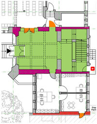 die Eingangshalle brandschutzmäßig von den anderen Räumen des Gebäudes getrennt. Dies soll durch behutsame Ertüchtigung vorhandener Türen bzw. den Einbau neuer denkmalgerechter Brandschutztüren erfolgen. Im oberen Teil des Treppenhauses wird eine Rauchabzugsöffnung installiert.